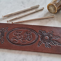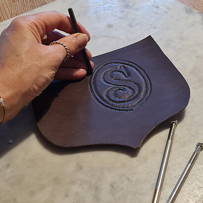 Hochwertiges Leder wird bei uns mit traditionellen Techniken wie Punzieren veredelt und von Hand genäht.