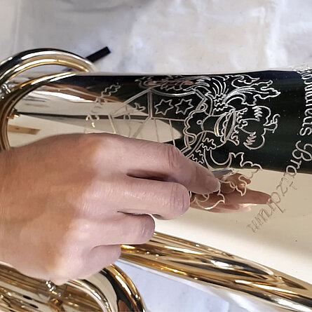 Ob Trompete, Tuba oder Flügelhorn – wir gravieren Logos, Muster oder Initialen auf Blasinstrumente.
