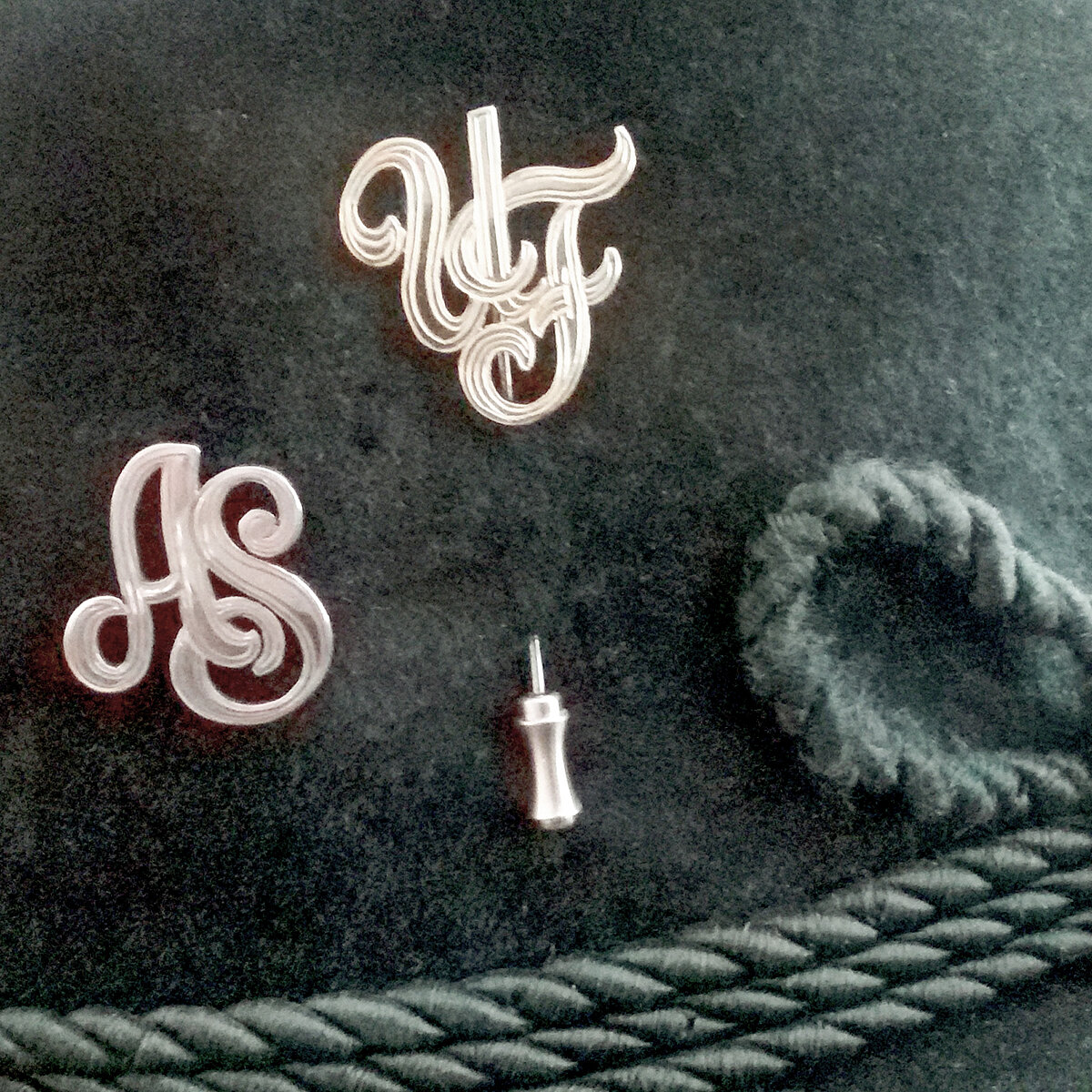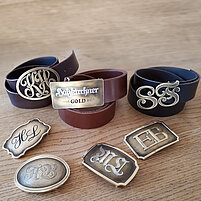 Individuell gefertigte Gürtelschließen, Miederschmuck oder Hutnadeln mit Initialen, Zunftzeichen, Symbolen oder Ornamenten.